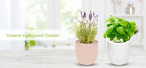 Hydroponic Herb Growing Pink Ceramic Kit, Self-Watering Kitchen Garden Starter Kit with Organic Seeds (Lavender)