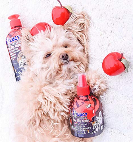 Lucy Pet Products The Big Apple Skin Soothing Apple Oatmeal Shampoo is made with natural ingredients, Accommodates no parabens, sulfates or harsh chemicals and 100% cruelty-free. Proudly manufactured in California, USA. “Lucy Pet Products The Big Apple Skin Soothing Apple Oatmeal Shampoo for Dogs is skin soothing, tearless and coat-enhancing. An effective way to get your dog clean and smelling good for an evening in town or just at the couch watching TV with you! A blend of mild natural coconut oil cleansers, plus Oat oil (Avena Sativa Kernel Oil, anti-irritant), Whole Oats (skin soothing), Apple fruit extract (moisturizer).These are a part of our ‘Products With A Cause’, proceeds go to lend a hand animals in need through the Lucy Pet Foundation. Lucy Pet Products Shampoos and Conditioning Sprays contain natural ingredients which are effective, soothing and coat enhancing. Accommodates no parabens, sulfates or harsh chemicals and is 100% cruelty-free. Proudly manufactured in California, USA. Our carefully prepared formulas be sure that your dog will have a beautifully conditioned coat that smells great!