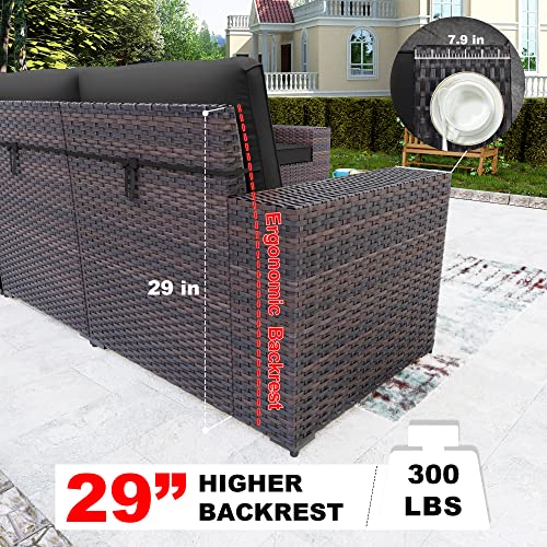 🏡【Upgraded Design】:After continuous upgrading , our patio seat set has an ergonomically designed backrest with a height of up to 75CM, which allows our back to be strongly supported. Every pillow is higher than the top of the seat, adding to the comfort of the Outside sofa. The 7.9-inch armrest is wide enough for arms that can naturally lean and stretch. The armrest is flat and can be utilized as a small table to place some drinks. wide and deep sofas will provide enough room to seat comfortably.