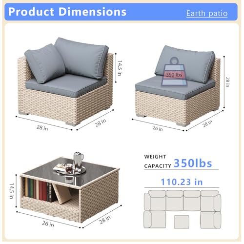 Versatile Modular Design: Our outdoor sectional sofa features a modular design, allowing you to customize your patio set to fit any outdoor space. The flexibility of this outdoor furniture allows for various configurations, making it perfect for different seating needs and layouts.