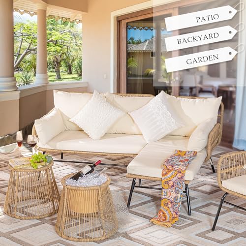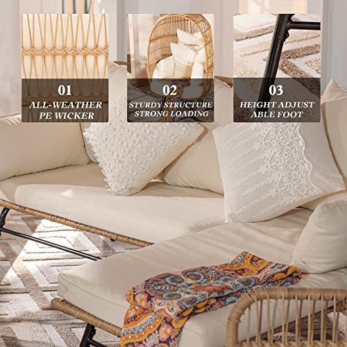 Weather-Resistant and Long-lasting: Our set is crafted with weather-resistant PE wicker woven over a durable powder-coated steel frame. The sofa cushion covers take care of their color for as much as 2000 hours, ensuring long-lasting beauty and functionality