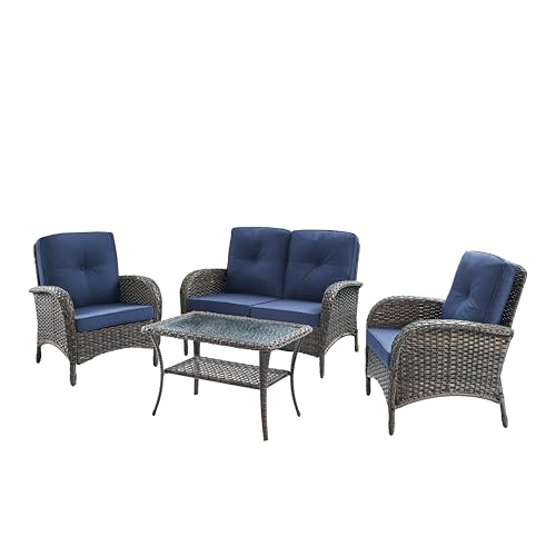 HUMMUH 4-Piece Patio Furniture Wicker Outdoor Conversation Set,All-Weather Rattan Outdoor Sofa Set Patio Chairs Coffee Table for Backyard,Porch,Deck
