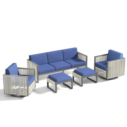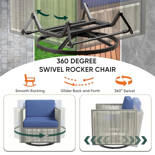 Specification: HUMMUH 5 Piece Patio Furniture Set High Back Outdoor Couch with Outdoor Rocking Chair Wicker Outdoor Furniture for Patio Garden Porch Backyard Poolside-Grey White/Blue