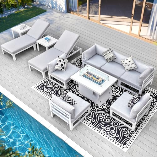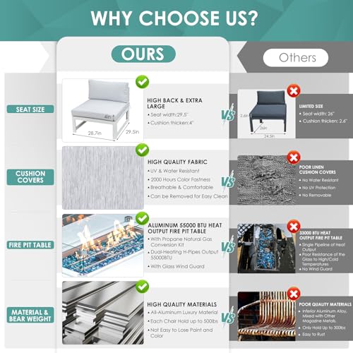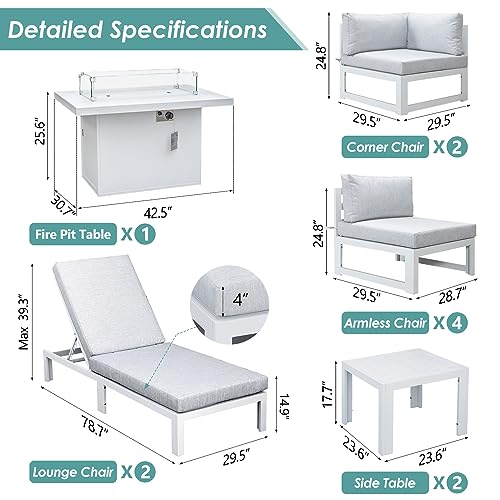 Specification: RADIATA 11pcs Modern Aluminum Patio Furniture Set with 43” Propane Fire Pit Table (White)