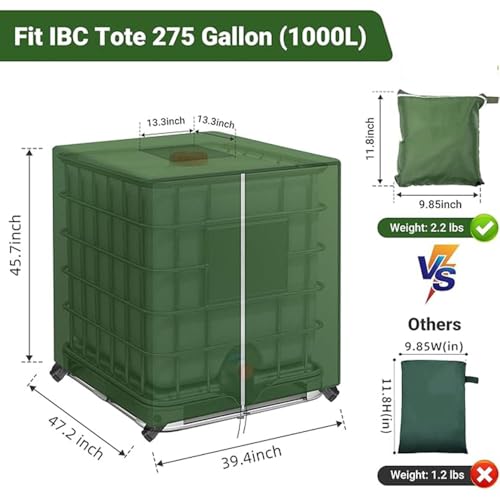 Specification: Green IBC Tote Cover,KY-HUAEN 500D Zipper Heavy Duty 275 Gallon Tote Cover,IBC Ton Barrel Rain Barrel Water Tank Protective Cover