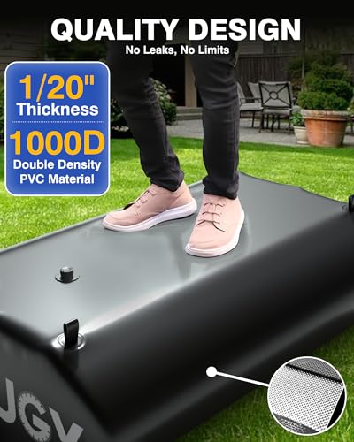 【 TECH-INFUSED TOUGHNESS 】 This water bladder storage is constructed with 1/20-inch thick 1000D double-sided high-density PVC-coated tough mesh material, ensuring leak resistance, tear resistance, aging resistance, UV resistance, corrosion resistance, and abrasion resistance. With an 87-gallon capacity, it meets more than a few non-potable water needs in different scenarios, making it a reliable choice for outside enthusiasts, campers, and emergency water supply.