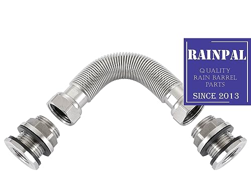 Specification: RBLSS5 Heavy Duty Stainless Steel Rain Barrel Linking Kit (Two SS304 Bulkhead Fittings and One 5” SS304 Corrugated Hose Expandable to 7.5”) (1)