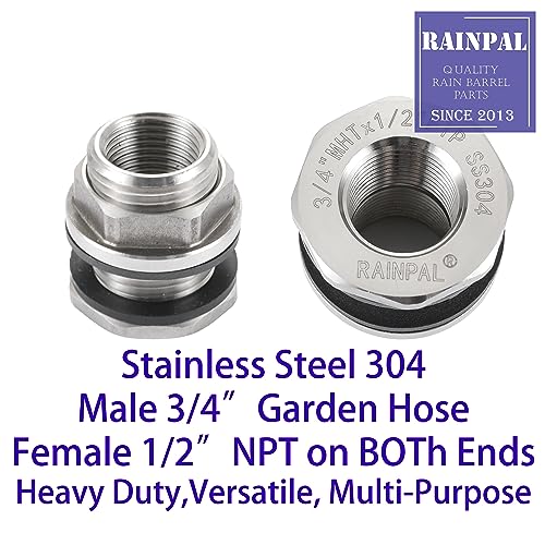 Two Stainless Steel 304 Fittings, Male Garden Hose Threaded. ½” NPT Threaded on Both Ends, Versatile and Multi-Purpose