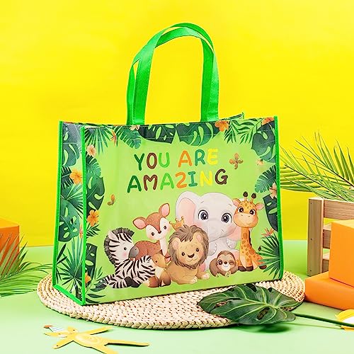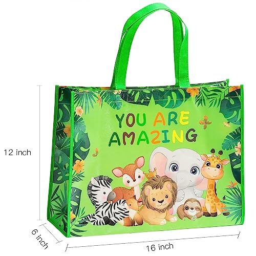 UNIQUE DESIGN: Gift bag features vivid colorful fun patterns with jungle anmimals and “YOU ARE AMAZING” letting printed on a green background. Our unique designs make our gift bags perfect for kids!
