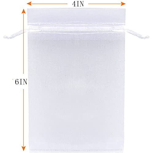 Sets of 50 Gift Bags Organza 4×6 Inch White Drawstring Sheer Fabric Solid Color Recycle Pouch for Jewelry Bracelets Food Baby Shower Christmas Party Favors Wedding Bridal Shower Teacher Gift