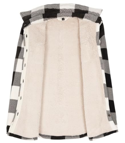 Lisskolo Women Fleece Lined Shirt Jacket with Hand Pockets, Plaid Button Down Sherpa Fleece Shacket Outerwear Flannel Jackets