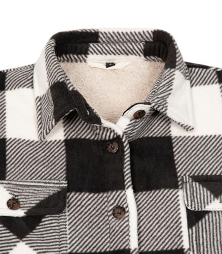 Specification: Lisskolo Women Fleece Lined Shirt Jacket with Hand Pockets, Plaid Button Down Sherpa Fleece Shacket Outerwear Flannel Jackets