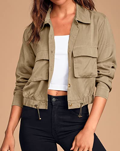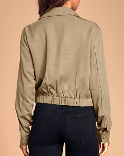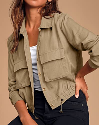 Onedreamer Women’s Military Safari Cropped Jackets Button Down Lightweight Oversized Utility Anorak Coat with Pockets