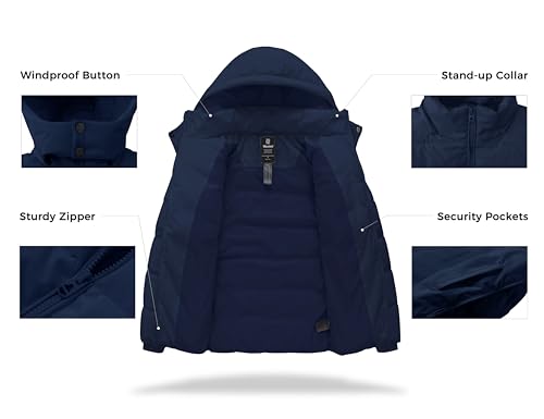 wantdo Men’s Waterproof Puffer Jacket Warm Winter Coat Thicken Parka Jacket with Removable Hood (Regular and Big Size)