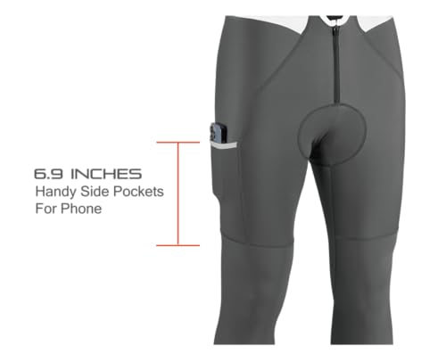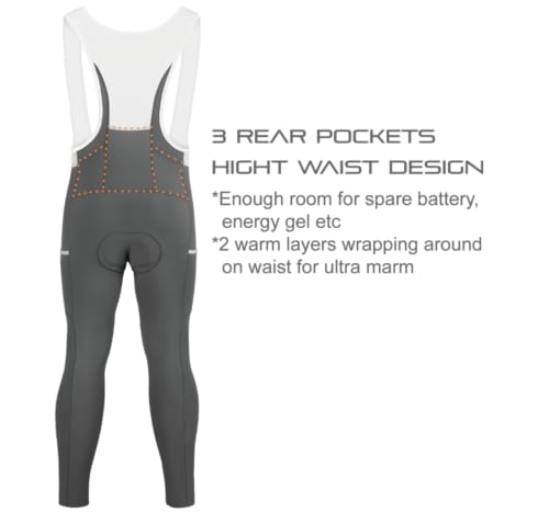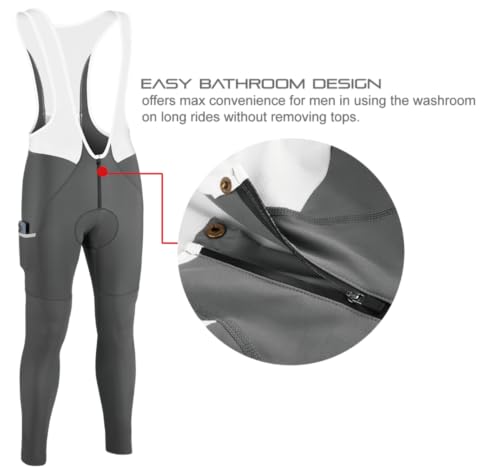 Specification: Men’s Fleece Cargo Cycling Bib Pants 4D Pad, Zipper Opening Front Thermal Bike Tights Long Legging for Cold Weather