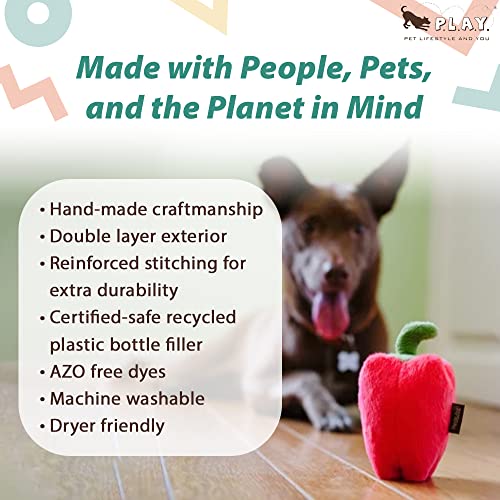 P.L.A.Y. Cute Plush Dog Toys – Vegetable Themed Durable Squeaker Plush Chew Toy, Great for Puppies & Small, Medium, Large Dogs – Machine Washable, Recycled Materials (Farm Fresh Bell Pepper)