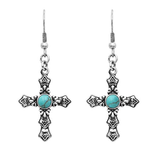 Specification: Rosemarie & Jubalee Women’s Western Style Turquoise Howlite Decorative Cross Religious Dangle Earrings, 1.75″-2″