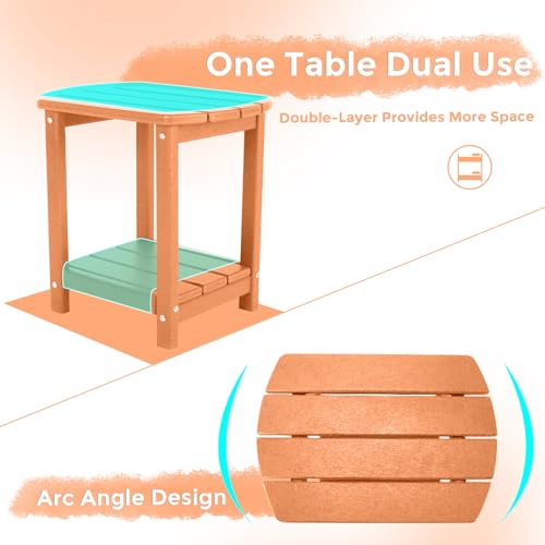 【DURABLE MATERIAL】This side tables are made of recycled plastic HDPE material that may be more weather resistant than other poly lumber table.HDPE is an eco-friendly solution to wood.Weatherproof, heavy-duty construction withstands a range of environmental stressors,Weatherproof, heavy-duty construction withstands a range of environmental stressors