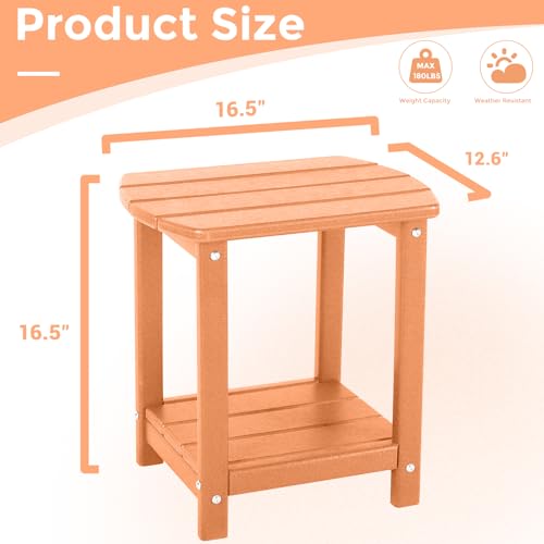 Specification: Adirondack Square Outdoor Side Table,2-Tier Storage Patio Side Table, HDPE End Tables for Backyard Pool Porch Garden Lawn GoldenYellow