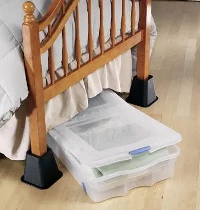Furniture Riser by Galaxy Furniture Bed raisers are an amazing way to gain approximately 6-inches of storage space (in that ever so important unused space under the bed). These bed risers provide you with storage space you never had before. These sturdy blocks in an instant elevate your bed for up to 6-Inch of additional under-bed storage space, perfect for those extra large storage bins. These bed risers are perfect for any dorm room setting. Create Under-Furniture Storage Use these risers to effectively utilize under-the-bed storage and safely hoist your beds or furniture to an extra 6″. A hassle free answer for little rooms, apartments, and condos with constrained storage space. These customizable furniture risers instantaneously create storage space under your furniture whether it be your bed, sofa and the like.Bed risers system in an instant creates additional under bed storage space making cleaning underneath furniture easier (great for robot vacuums) Improved Get entry to with Minimal Effort Required Alter the height of beds, couches, and seats to suit the individuals who experience issues when sitting or rising. Bed risers are perfect for adjusting furniture height to help seniors and the elderly. The risers are likewise ideal for elevating worktables to reduce backaches and pains. It is useful with tables having four legs as it helps in bettering Get entry to by raising your table/desk up to 6 inches higher. It also reduces the effort to stand from low sofas/couches when you apply these furniture risers to them.