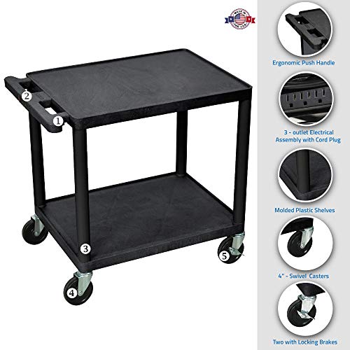 Specification: Luxor 26″ H Black 2 Shelf A/V Multipurpose Utility Cart