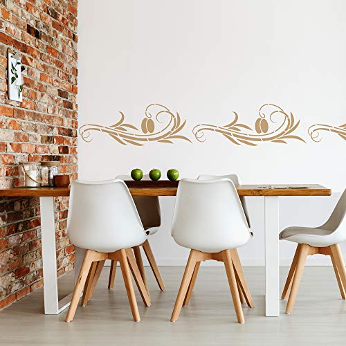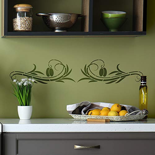 NAKLEO Border Reusable Plastic Wall Stencil – 21x45cm / 8” x 17” – Olive Leavef Floral – Pattern Painting Stripe DIY Art Craft Template – Fabric Furniture Wood