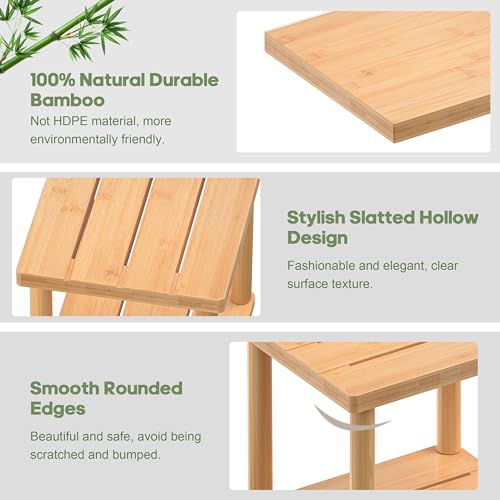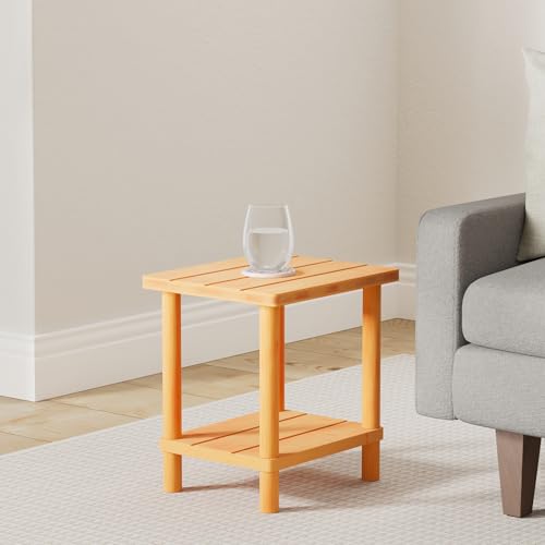 Outdoor Side Table, 2-Tier Small Outdoor Table for Patio, Adirondack Side Table for Outside or Indoor, Bamboo End Table for Pool, Porch, Weather Resistant Easy Maintenance