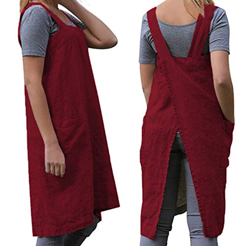 Specification: Women’s Practical Cross Back Pinafore Apron with Large Pockets Home Kitchen,Restaurant,Coffee house,Cooking Gardening Works
