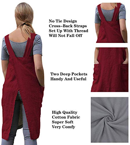 Women’s Practical Cross Back Pinafore Apron with Large Pockets Home Kitchen,Restaurant,Coffee house,Cooking Gardening Works