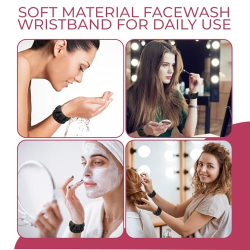✔️ 𝐅𝐥𝐞𝐱𝐢𝐛𝐥𝐞 𝐚𝐧𝐝 𝐬𝐭𝐫𝐞𝐜𝐡𝐞𝐝: These face wash wrist bands are made of soft material and with good elasticity, with a max stretch length of 14cm/5.51 inches. They have good moisture absorption, and with these wrist towels, you can keep water from dripping down your arms, keeping your skincare routine neat and mess free.