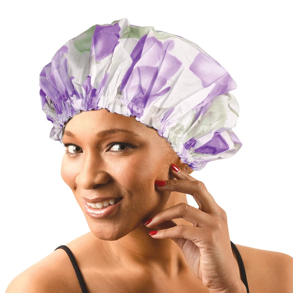 Specification: Shower Cap for Women Donna Shower Caps for Women Reusable Waterproof Travel Accessories for Women Spa Patten FLORAL PURPLE X-Large