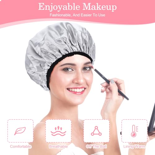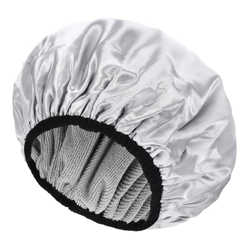 Terry Lined Shower Caps for Women Reusable, Triple Layer Large Shower Cap Terry Cloth Lined Waterproof Bath Cap Hair Cap for Long Thick Hair(Grey)