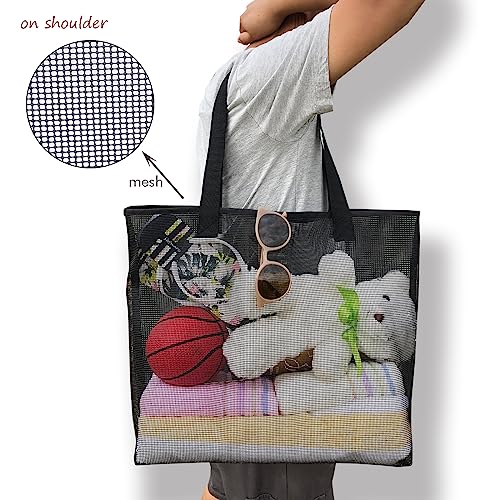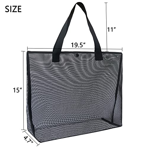 2Pack Large lightweight Simple Mesh Beach Tote Bag With snap Button Reusable Pool Bag for Outdoor Travel Shopping Gym