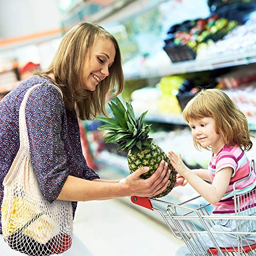 Specification: 5 pack Cotton String Shopping Bags Reusable Washable Grocery Mesh Bags Organizer for Grocery Shopping Produce Net Bags with Longhandle for Fruit Vegetable Storage