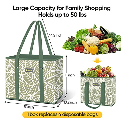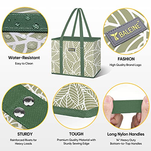 BALEINE 3Pk Reusable Grocery Bags, Foldable Shopping Bags for Groceries with Reinforced Bottom & Handles (Antique Foliage)