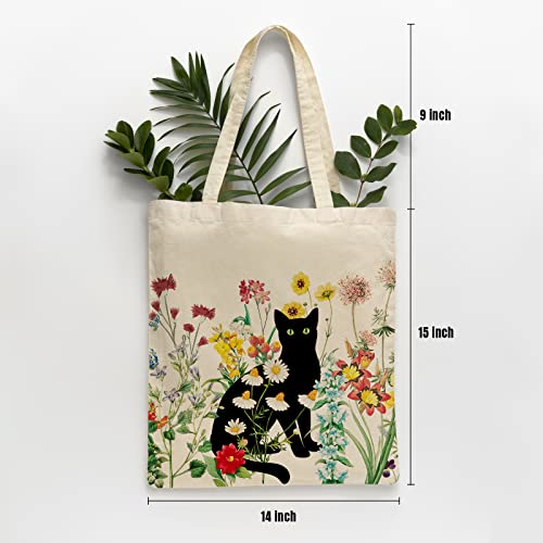 ELEGANT TOTE BAG AESTHETIC: Bmuvghi tote bag has a unique and original design. Design elements include a black cat, vintage flowers and leaves. These cute tote bags are ideal holiday gifts for women and teacher. THIS ITEM IS NOT INTENDED FOR USERS UNDER 12 YEARS OLD.