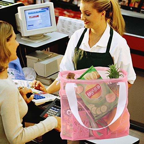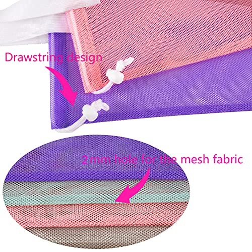 Reusable 4Pack Colorful Mesh Beach Tote Bags,Mesh Shopping Bag With Drawstring For Travel,Toys,Gift Or Laundry … …