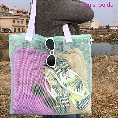 Specification: Reusable 4Pack Colorful Mesh Beach Tote Bags,Mesh Shopping Bag With Drawstring For Travel,Toys,Gift Or Laundry … …