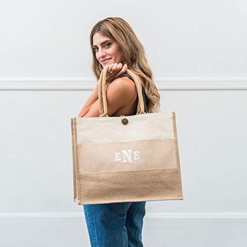 WEDDINGSTAR Large Personalized Reusable Canvas and Jute Fabric Beach Tote Bag