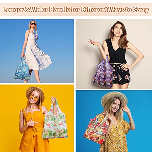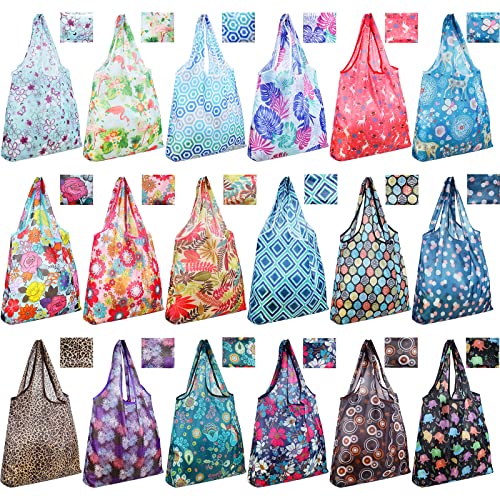 Weewooday 18 Pieces Foldable Reusable Shopping Bags Machine Washable Bags Waterproof Nylon Reusable Grocery Bags