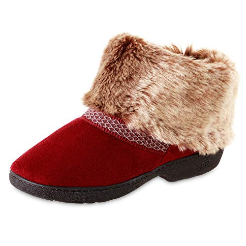 isotoner Women’s Recycled Microsuede Mallory Boot Slipper, with Memory Foam and Indoor/Outdoor Sole