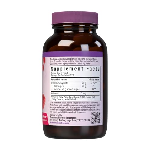 Specification: Bluebonnet Nutrition EarthSweet Melatonin 5 mg Fast-Acting Quick Dissolve Nighttime Relaxation & Restful Sleep Support – Sleep Aid – Gluten-Free, Vegan – Raspberry Flavor – 120 Chewable Tablets