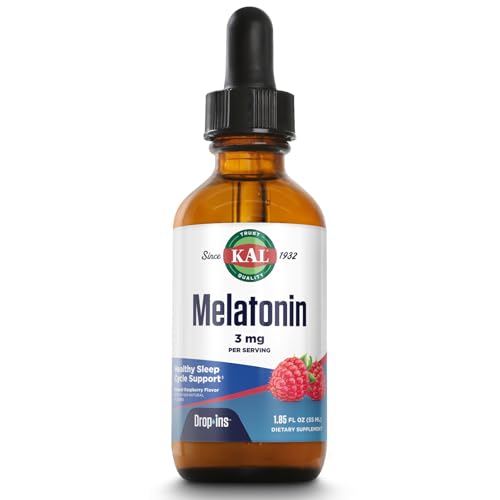 Specification: KAL Melatonin DropIns 3mg, Healthy Sleep Aid Support, Liquid Melatonin Drops for Optimal Absorption & Calming Relaxation Support, Fast Acting, Natural Raspberry Flavor, Approx. 55 Servings, 1.85oz