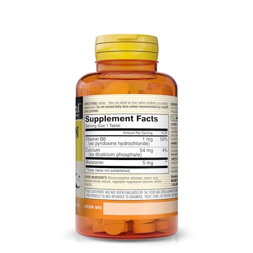 Specification: MASON NATURAL Melatonin 5 mg with B6 and Calcium, Natural Sleep Aid, Supports Healthy Sleep & Rest, 60 Count