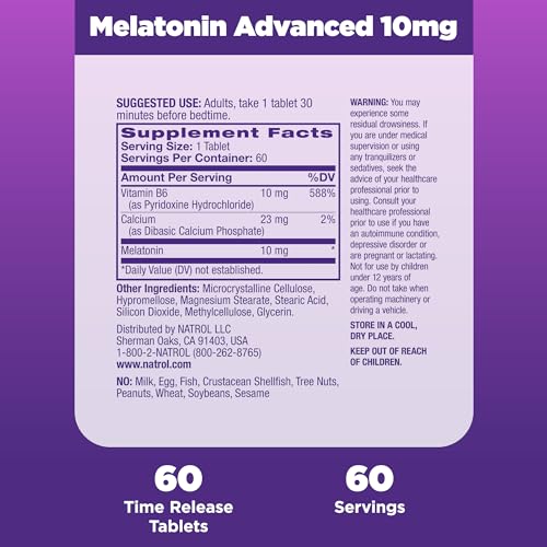 Specification: Natrol Sleep Advanced Melatonin Time Release Tablets, Nighttime Sleep Aid, 10mg, 60 Count