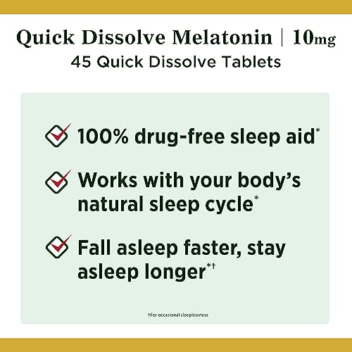 Nature’s Bounty Melatonin, 100% Drug Free Sleep Aid, Dietary Supplement, 10 mg, 45 Count