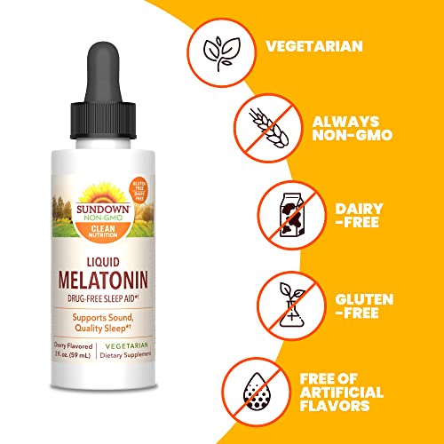 Sundown Liquid Melatonin Drug-Free Sleep Aid, Cherry Flavor, 2 Fl Oz (59 mL)