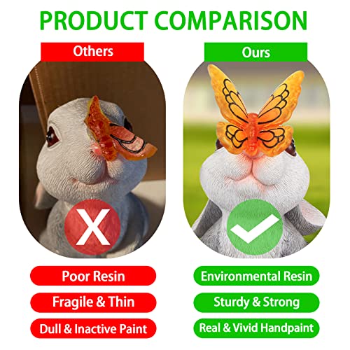 Cute Garden Statues – Retro appearance,deep eyes,long ears,clear texture.Butterfly rests on the Rabbit’s nose, make the statue Lively and vivid.