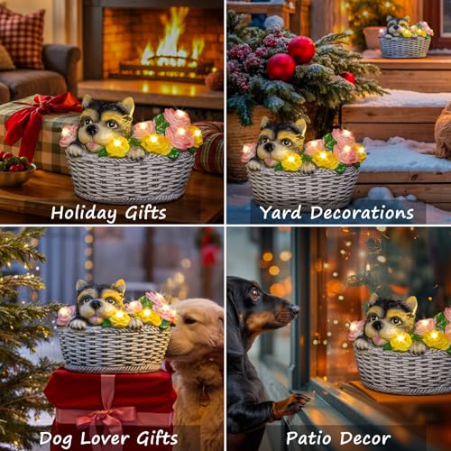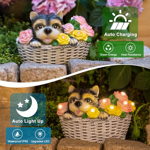 Homeimpro Garden Decor Outdoor Statues Solar Lights, Dog Yorkie Lover Gifts, 8LED Figurine Lights Balcony Yard Outside Decor, Patio Decorations, Birthday Garden Gifts for Women