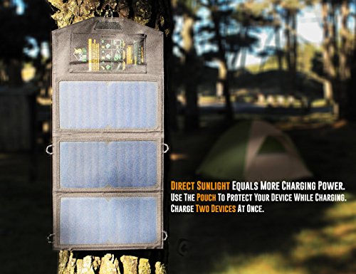 Specification: 21W Lightweight Portable Solar Charger for Camping – Foldable Solar Powered Cells with 2 USB Ports To Fast Charge Smartphones, Tablets & Battery Packs -Charge While Hiking, Camping & Fishing
